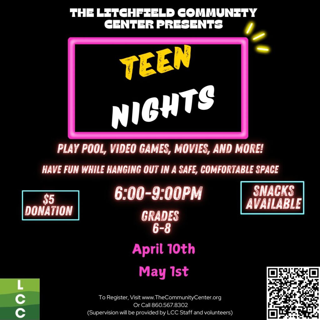Thu, April 2 @ 1:00 pm - 5:00 pmTeen Nights Grades 6-8 April 10th