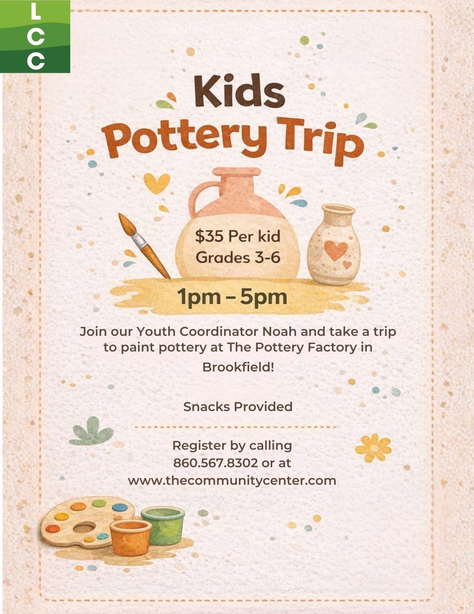 Join our Youth Coordinator, Noah, for a fun and creative afternoon at The Pottery Factory in Brookfield! Kids in grades 3–6 will enjoy painting their own pottery pieces while exploring their artistic side in a welcoming, hands-on environment.