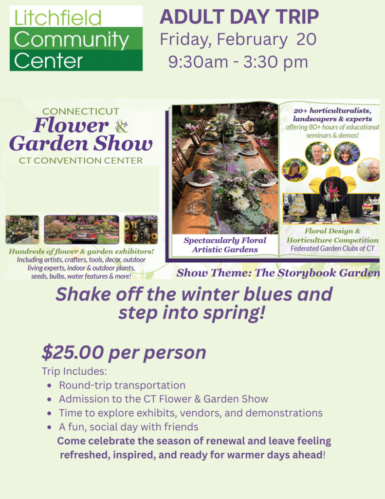 February 18 @ 12:30 pm - 2:00 pmCT Flower & Garden Show- Adult Day Trip
