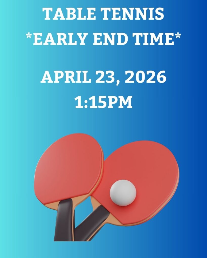 Wed, April 22 @ 12:00 pm - 1:30 pm*EARLY END TIME* Table Tennis