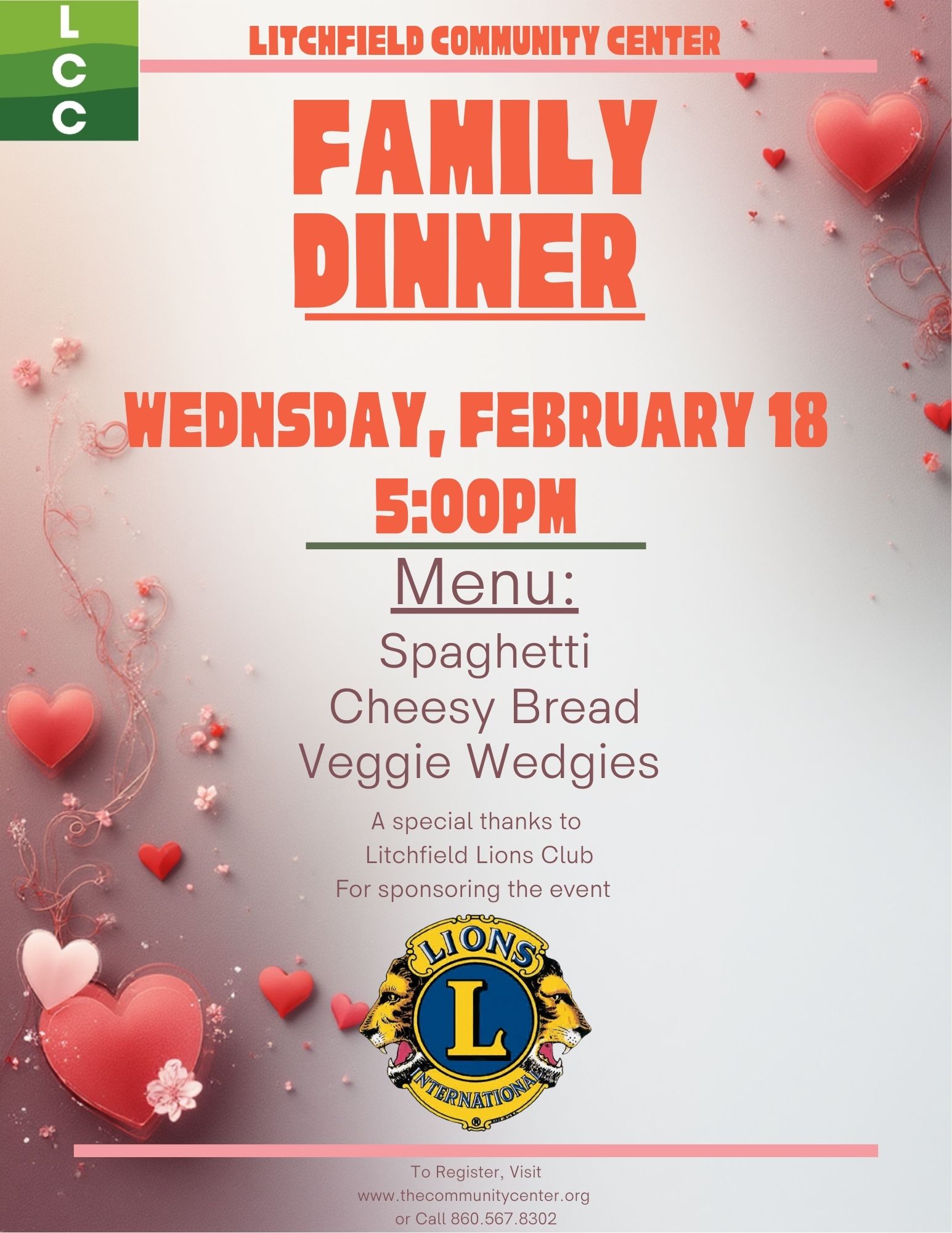 ![]() ![]() Family Dinner – February 18th at 5:00 PM CLICK HERE TO REGISTER Join us at the Litchfield Community Center for a warm and welcoming Family Dinner. This free event is open to all families and offers a great opportunity to connect with neighbors and enjoy a delicious meal. Menu includes:Spaghetti, Cheesy Bread, and Veggie Wedgies […] |