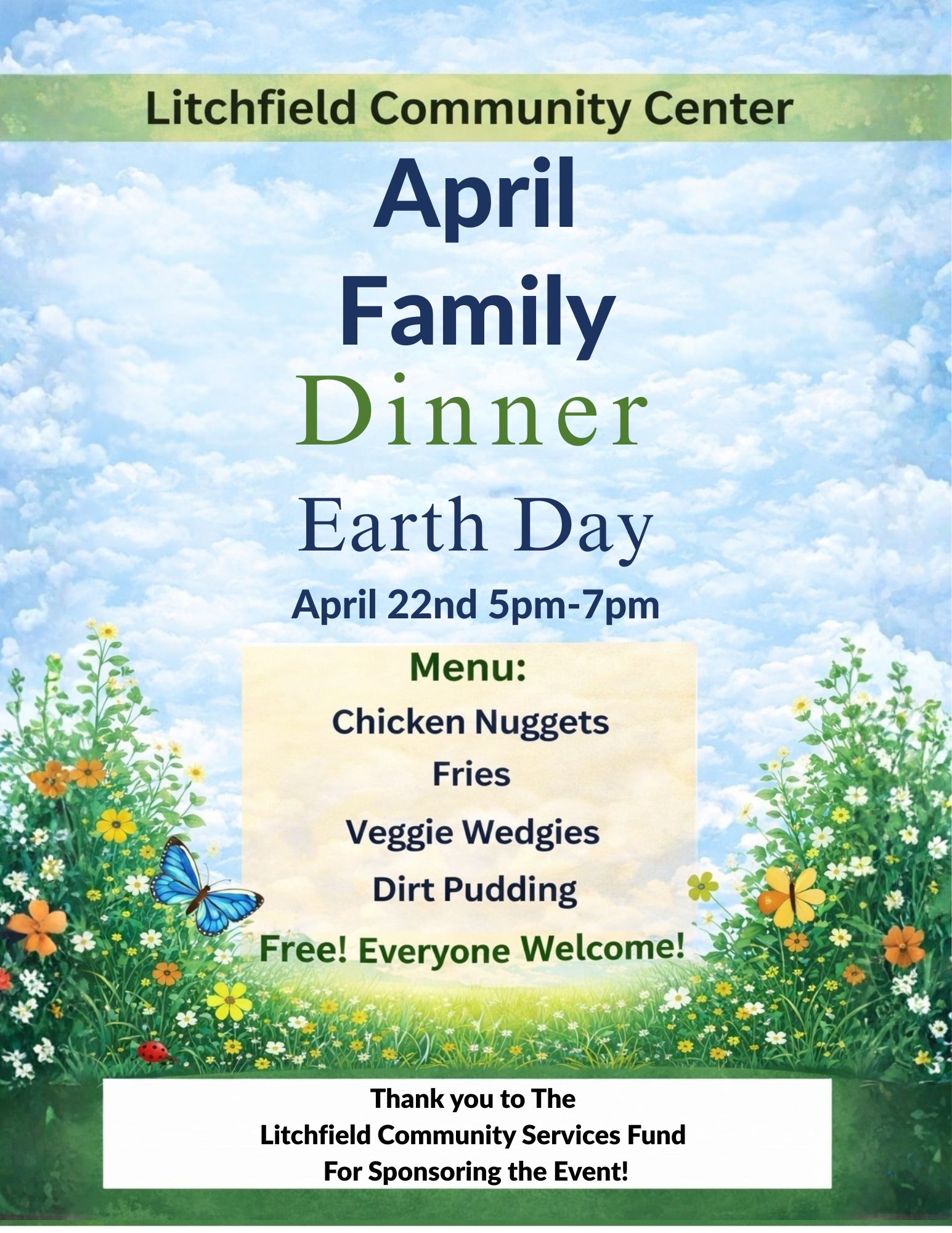 CLICK HERE TO REGISTER Join us at the Litchfield Community Center for our April Family Dinner celebrating Earth Day. This free community event will take place on Tuesday, April 22nd, from 5:00 PM to 7:00 PM and is open to everyone. Families and community members are invited to enjoy a relaxed evening together with a […]