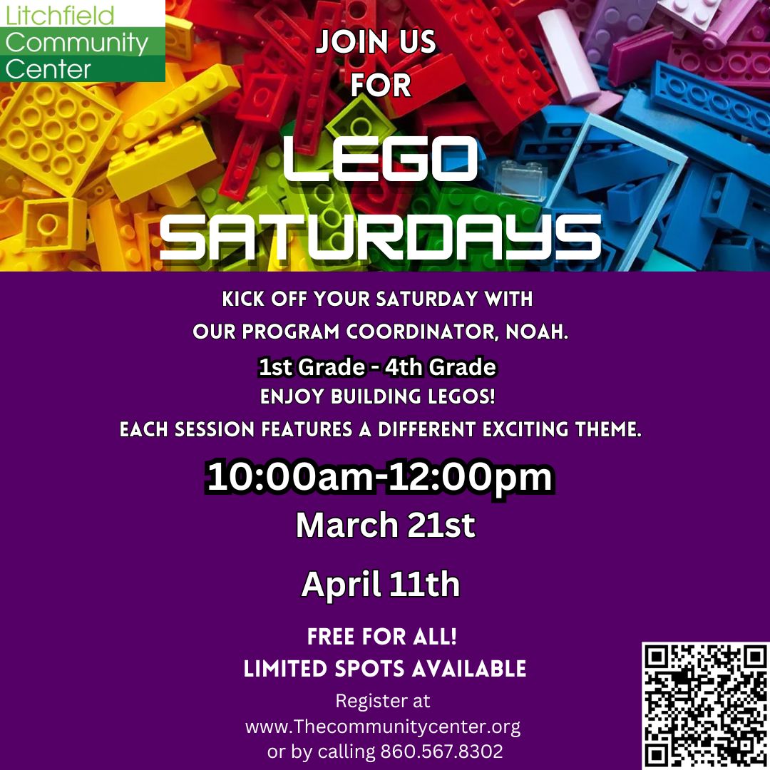 Join us for a creative and fun-filled series of LEGO-building events at the Litchfield Community Center! Our Saturday LEGOs program, led by our Program Coordinator Noah, invites children to dive into themed LEGO projects once a month on Saturdays.